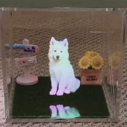 Experience your pet's image like never before. Our advanced holographic technology creates a stunning, lifelike projection that captures their unique personality and charm,making them feel closer than ever.